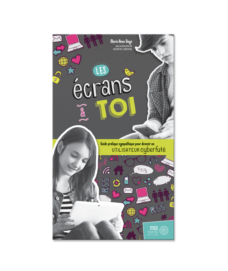 Mon souhait: que mes élèves passent de cybernaïfs à cyberfutés. Mission impossible? Non. Pas lorsque l’outil Les écrans et toi entre en jeu. Un autre outil moralisateur? Pas du tout. Marie-Anne Dayé, journaliste qui s’intéresse depuis quelques années à la relation des enfants avec les technologies de l’information et de la communication (TIC), propose un guide pratique et sympathique, qui parle directement aux ados. Cet outil leur propose des tests pour reconnaître la place de l’informatique dans leur vie, afin de gérer son utilisation et devenir un utilisateur cyberfuté.