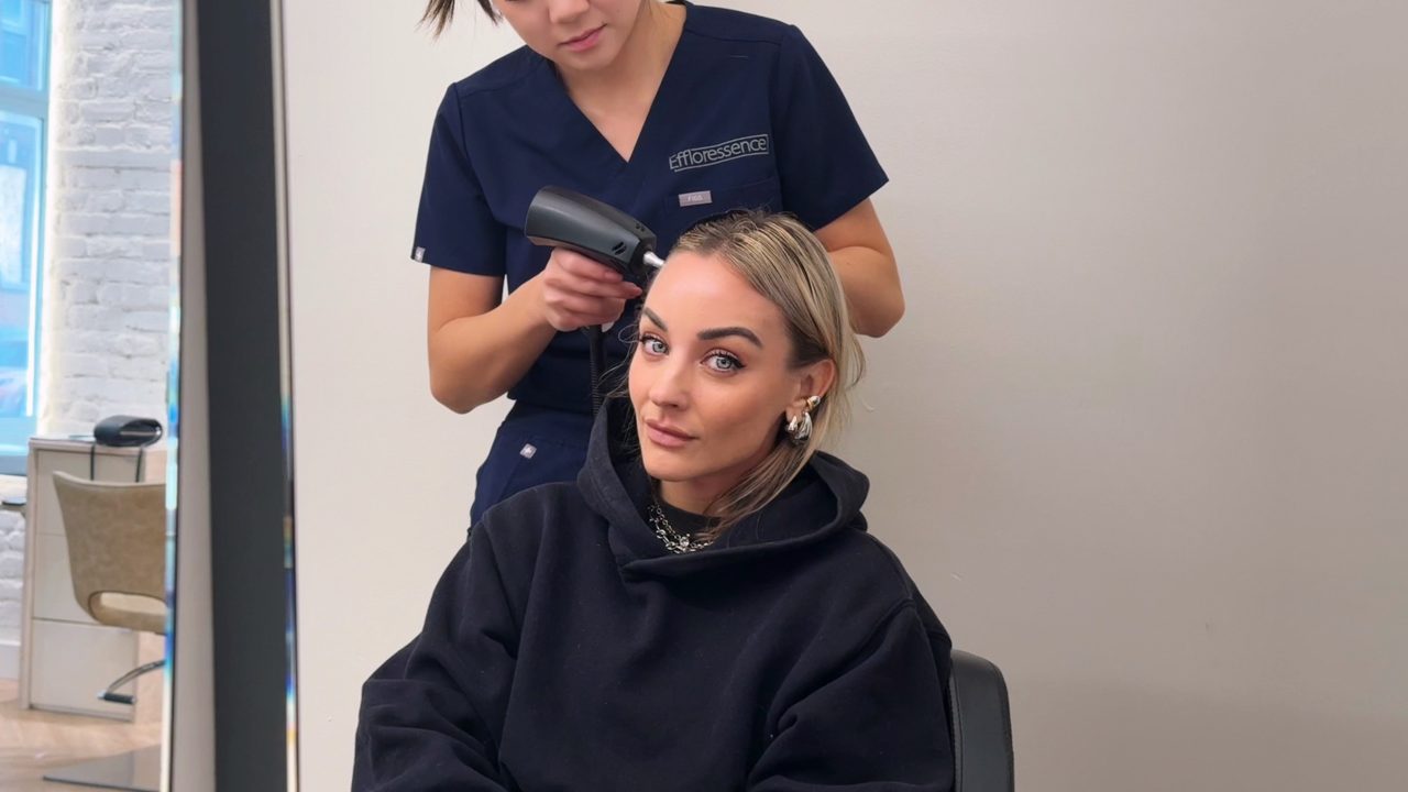 Le traitement est pratiquement imperceptible: une sensation tiède et relaxante, sans aucune douleur ni inconfort. J’ai reçu un total de quatre séances, espacées de quelques semaines, et les résultats sont apparus assez rapidement. J’étais tellement heureuse quand j’ai commencé à voir tous les petits cheveux repousser autour de mon visage! Les zones dégarnies se sont remplies, et mes cheveux ont visiblement repris du corps.