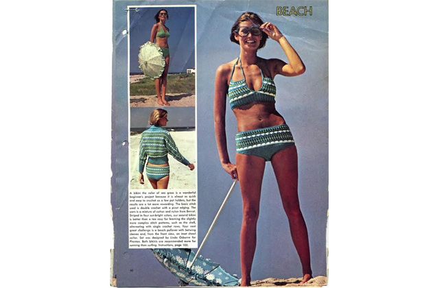 — Toujours dans l’optique de la plage, la compagnie Phentex avait même créé des patrons de bikinis, mais le seul défaut de la fibre, c’est qu’elle se détériore au chlore. Imaginez un bikini en Phentex humide et détérioré… Inutile de préciser qu’à l’époque des années 70, ce n’était pas les culottes de bikinis qui avaient la fibre longue!