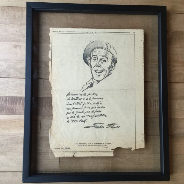 En regardant les photos de Gratien, je trouve le courage de continuer ma quête artistique. Je fais confiance à mon ADN. Ma bonne étoile est là, elle m’observe et me protège de là-haut. Il m’arrive souvent d’avoir de grands doutes sur mes capacités ou des questionnements sur un quelconque projet qui est plus difficile à réussir. À ces moments où la faille pourrait s’excaver pour devenir le Grand Canyon, il y a toujours quelqu’un qui m’arrête dans la rue pour me dire à quel point il a aimé l’œuvre de mon grand-père. Ils sont vieux ou jeunes (Dieu merci, on étudie encore ses pièces au Cégep) et me font ce généreux cadeau du souvenir. Quelquefois, on m’envoie une version vintage d’un de ses livres ou même une photo. Chaque fois, cela me renverse. J’ai même reçu cet original le jour de la fête des Mères: une couverture de journal avec mon grand-papa et sa mère! Dites-moi après cela que la vie n’est pas magique!