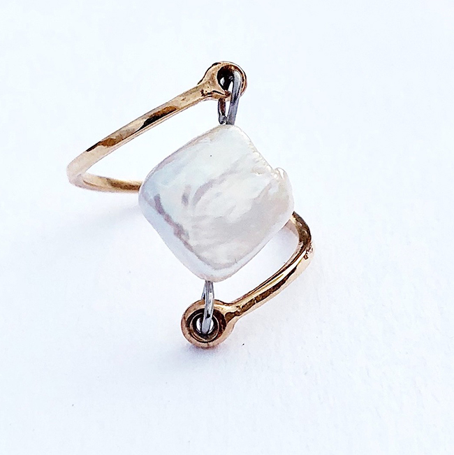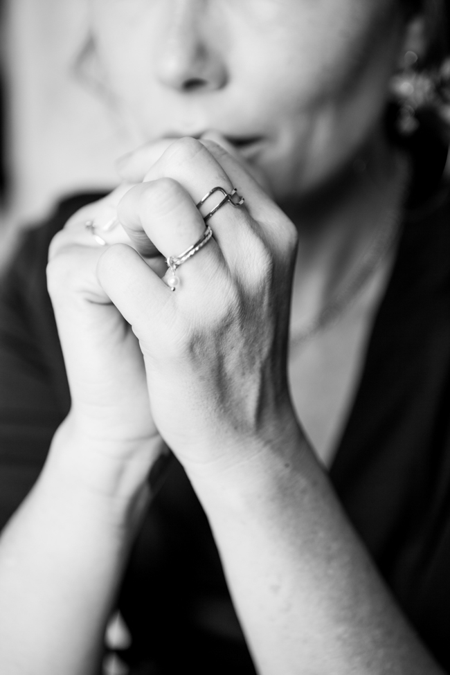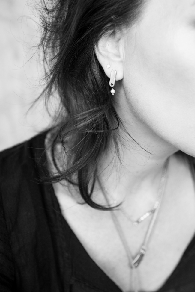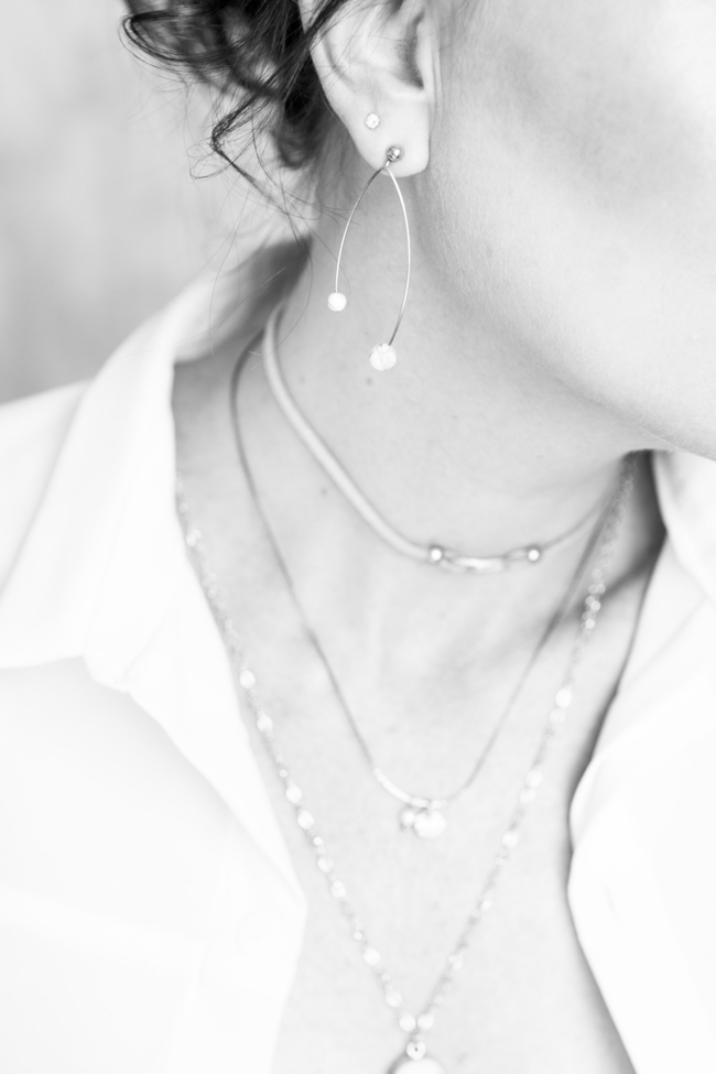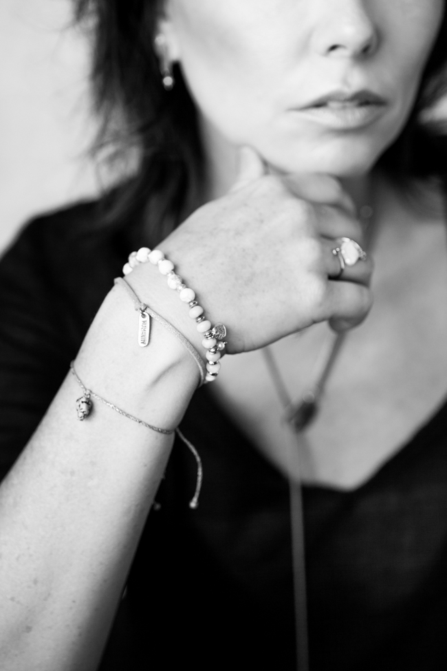 «Ce projet a été super tripant à réaliser! Ce qui est important aussi pour moi, c’est d’encourager ce qui est «made in Québec»! C’est primordial, acheter local! Au début, j’ai hésité une seconde parce que c’était une petite entreprise, mais quand j’ai rencontré Valérie Arseneault, ça a tout de suite cliqué! C’est vraiment une belle histoire: c’est un jeune couple, ils ont deux jeunes enfants adorables, elle fait tout elle-même, elle travaille fort, elle a une belle idéologie aussi derrière tout ça. Tout de suite, on se textait, je lui envoyais des photos de ce que j’aimais… Ça a été le fun de faire ça avec elle! Je ne voulais pas me lancer dans la confection de bijoux, pentoute là (rires)! J’aimais l’idée de travailler en collaboration avec quelqu’un afin de créer quelque chose que je pourrais porter par la suite. Je suis quelqu’un qui ne porte pas beaucoup de bijoux, mais ceux que je porte, je les porte tout le temps. Je ne les enlève jamais. Je dors avec! Alors, je voulais des bijoux qui se portaient facilement et qu’on n’était pas obligés d’enlever quand on se couche le soir. C’est sûr qu’il y a des morceaux que tu vas enlever là… mais la plupart, tu peux les garder.»