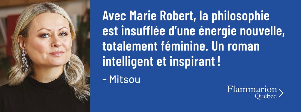 Entre la rédaction de ses romans, l’autrice française noircit les pages de ses réseaux sociaux en y déposant soit une scène vécue, un état d’âme ou un condensé philosophique qu’elle illustre avec de jolies photographies en noir et blanc. Comme lorsqu’on lit ses livres, on a l’impression de partager son voyage intérieur. Si la philosophie semble être une discipline ancienne, on a la preuve avec Marie Robert qu’elle peut être insufflée d’une énergie nouvelle et dans ce cas-ci, totalement féminine.