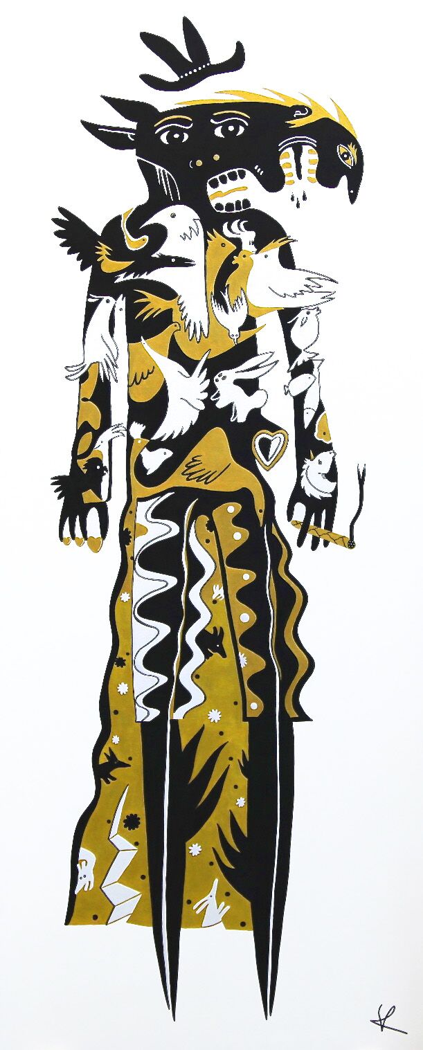 Oui! Contrairement à mes toiles du passé, dans laquelle, justement, les monstres essayaient de me détruire, maintenant, ils m’accompagnent. Ils sont plus beaux, moins terrifiants qu’avant, ils sont plus souriants… Ils font partie de ma vie. Je les accepte, parce que c’est moi aussi. Et je ne suis pas content de les avoir, mais en même temps, ça fait partie de la game!