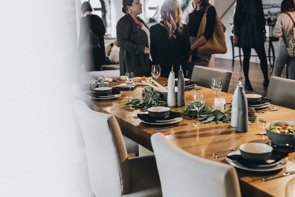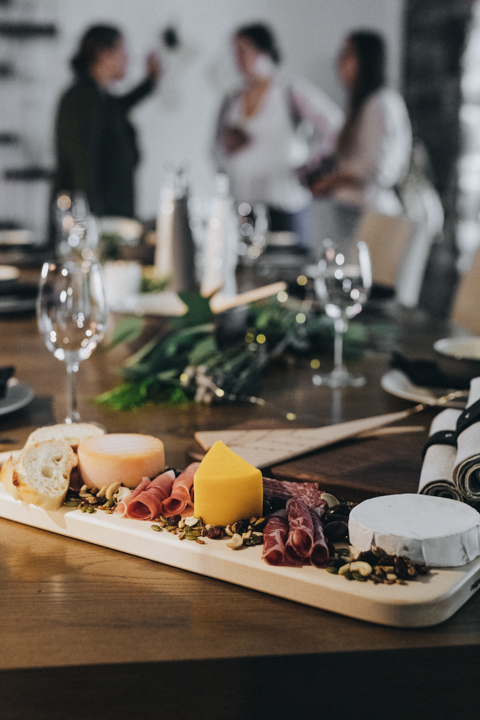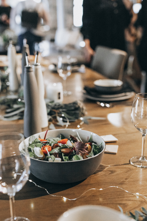 La table était mise avec les bols et huiliers de Julie Duguay Céramiste, les serviettes de table en lin de Confettimill, les planches en bois d’Atelier Meipel ainsi que les anneaux en cuir et ustensiles de service de BlisscraftandBrazen.