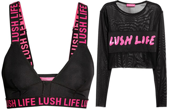 Sweat à capuche oversize, robe t-shirt écussonnée, pantalon looké, denim imprimé, casquettes et sac-banane… la chanteuse signe une collection de pièces de prêt-à-porter aux influences pops et féminines, faites de velours, de denim, de mesh et de jersey de coton!
