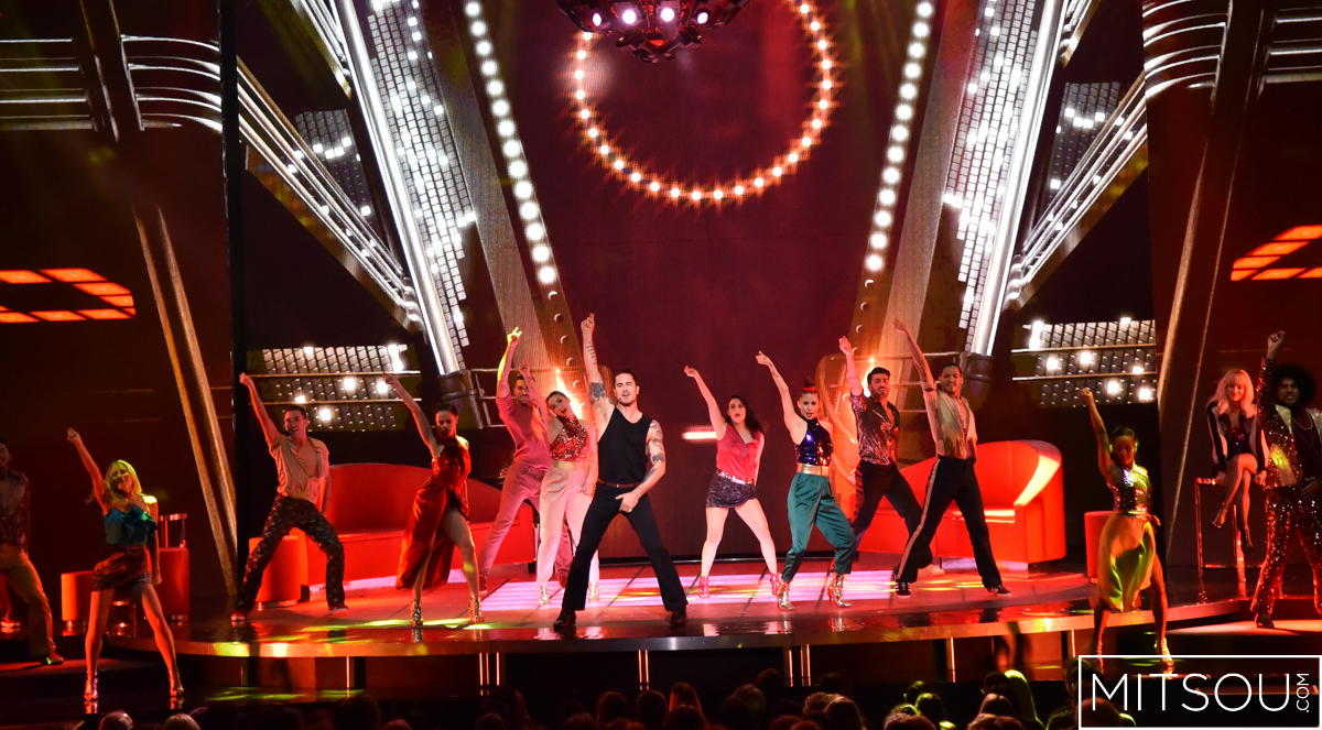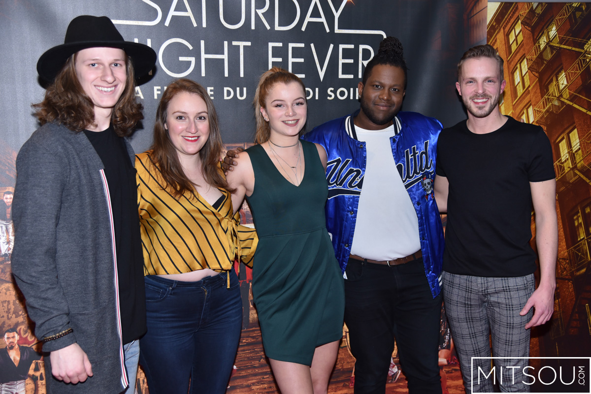 Aux côtés du couple vedette, 18 comédiens, danseurs et chanteurs se partagent le plateau afin de reproduire la célèbre histoire de Saturday Night Fever et il faut avouer que c’est franchement réussi, puisque l’ambiance survoltée et flamboyante nous fait danser sur notre siège pendant plus de deux heures! Mention toute spéciale aux éclairages et effets visuels, qui ne cessaient de nous hypnotiser… C’était grandiose! Amélie B. Simard (District 31, Les jeunes loups et Trauma), Joseph Martin (Virginie, O’, Les jeunes loups et Yamaska) et Matthieu Lévesque (Mixmania 2) complètent la distribution, tout comme Gwendal Marimoutou (The Voice France), Nevedya (la chanteuse principale de la version française du spectacle) et David Latulippe (La Voix 2016).