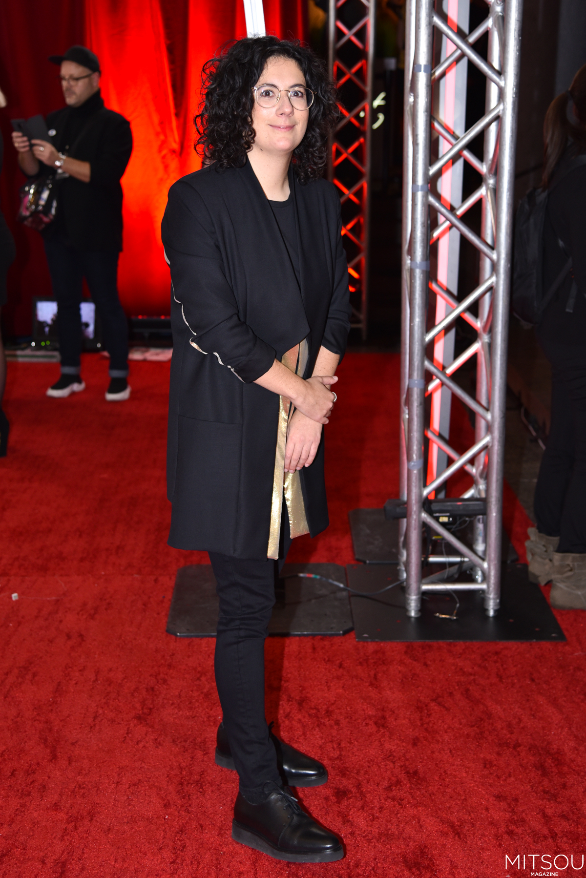Andréanne était à tomber avec une robe noire mi-longue, mi-courte et mi-paillettes Anomal Couture et sa crinière léchée.