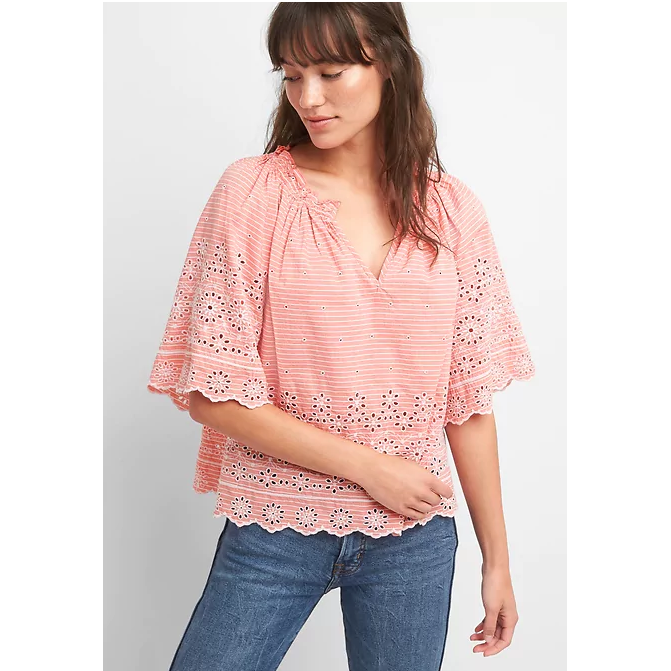 Chemisier froncé et brodé à encolure fendue Gap 58.00 $ Chemisier froncé et brodé à encolure fendue Gap 58.00 $ Acheter Tel que vu dans Tendance : la broderie anglaise