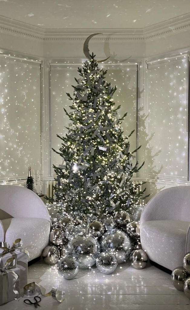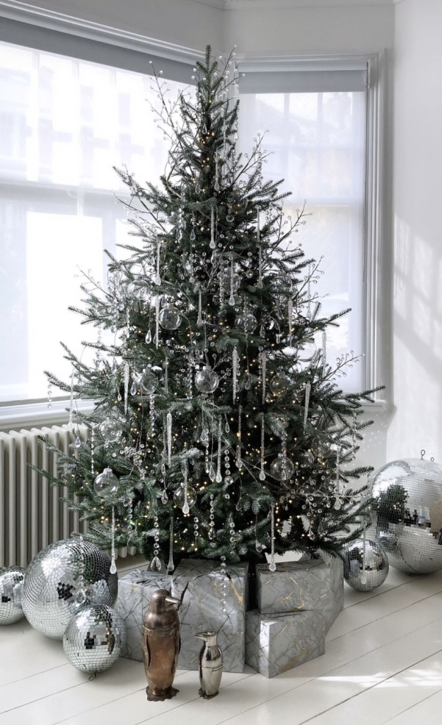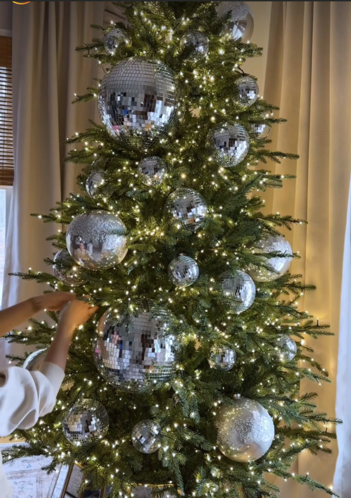 Pour 2025, on remet la boule disco au centre du salon et du sapin! L’effet métallique s’inscrit dans une esthétique résolument party: argenté miroir, touches chromées, effets scintillants et ornements disco qui s’accrochent au sapin. On adopte ce style avec une touche de sophistication tout en fredonnant Stayin’ Alive!