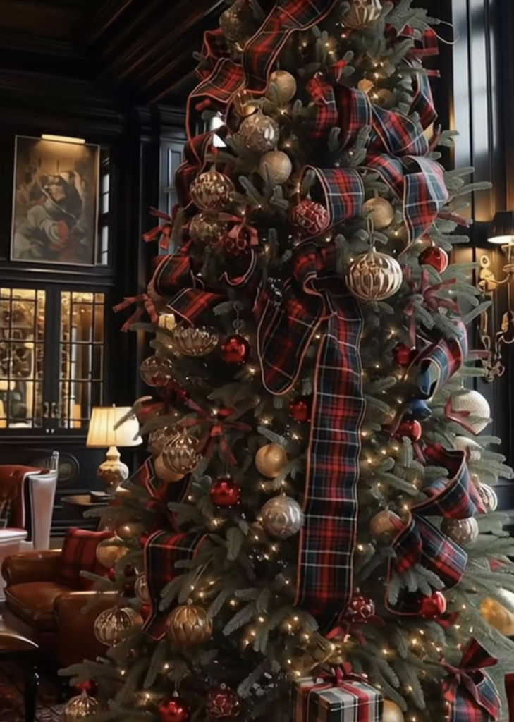 Ambiance chalet chic, couleurs profondes traditionnelles et textures nobles: la tendance Ralph Lauren s’installe comme un retour aux sources. Classique, le sapin vert forêt habillé de rubans tartan, de boules dorées et de touches d’un cuir brun ou de bordeaux rappelle l’essence de la marque. On se croirait dans un salon feutré des Hamptons, où le feu crépite et où chaque détail respire le raffinement.