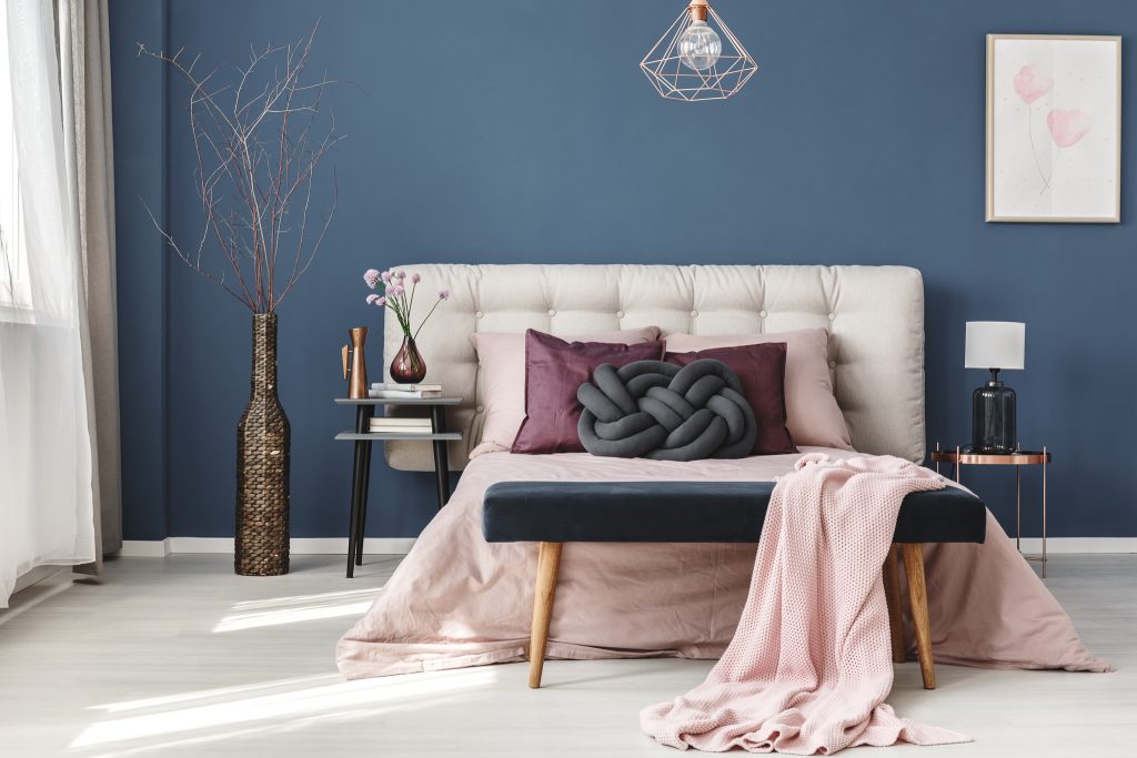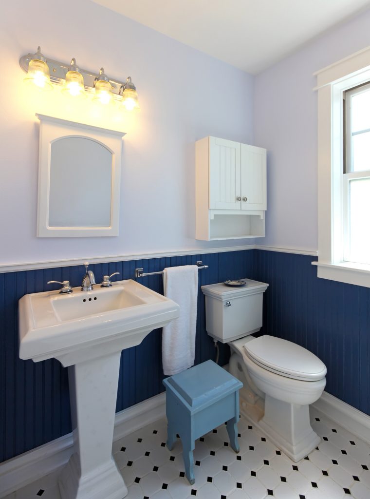 Le classique. Repeinturer. Bien que ce soit une activité qui n’est pas appréciée de tous et qui peut parfois se révéler plus difficile qu’on ne le pensait, le résultat donne souvent l’impression de renouveau et de fraîcheur. N’ayez pas peur d’utiliser le bleu classique sur vos murs, mais tel que mentionné plus haut, tout est une question d’équilibre. Si vous décidez de repeindre tous les murs du salon, assurez-vous d’avoir un mobilier qui n’est pas trop foncé. Pour une pièce plus petite, telle que la salle de bain, vous pouvez peinturer que la moitié des murs et utiliser une couleur plus pâle pour l’autre moitié.