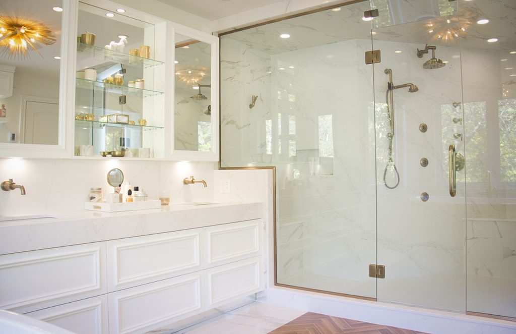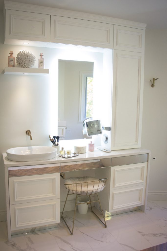 Un gros merci aussi à Espace Plomberium de la rue L’Acadie, entre autres à Patricia Methot, qui a été si patiente avec nos questionnements sans fin! Elle a bien su me conseiller, que ce soit avec la robinetterie or Litze de Brizo (je vous mets les liens, au cas où vous aimeriez vous en inspirer), les lavabos Canova Royal et SFERA de Catalano, la douche vapeur Mr. Steam, les haut-parleurs hydrofuges pour la douche de Zitta, les miroirs Miraz par Kalia et le miroir à cosmétiques iLook Move de Keuco ou la dernière, mais non la moindre, la baignoire de Bain Ultra.
