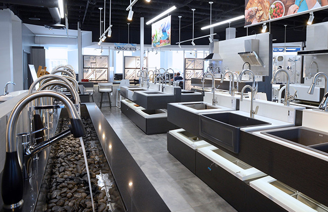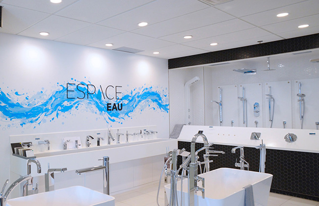 J’ai décidé d’ajuster ma salle de bain à ma nouvelle vie. Ça fait des années que j’y pense! Ce rêve va bientôt devenir réalité grâce à mon nouvel allié, Espace Plomberium. Vous les connaissez peut-être? J’ai visité pour la première fois la boutique sur l’Acadie près de Rockland (l’une des deux adresses à Montréal, les autres sont à Mascouche et à Saint-Jérôme) et j’ai eu un coup de foudre. J’y suis allée juste pour me donner des idées… j’en suis sortie avec le total look. La bonne nouvelle? Ils n’ont pas de table à langer à vendre, juste des accessoires de plomberie dernier cri pour salle de bain et cuisine 2017/2018! Yé!