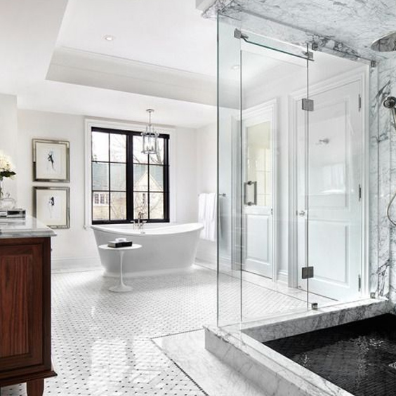 Je me suis aussi inspirée d’un hôtel que j’ai visité lors de notre 21e anniversaire de couple à New York ce printemps, le Baccarat, où j’ai vu des moulures en marbre, des chevrons au plancher et des miroirs en accessoire.