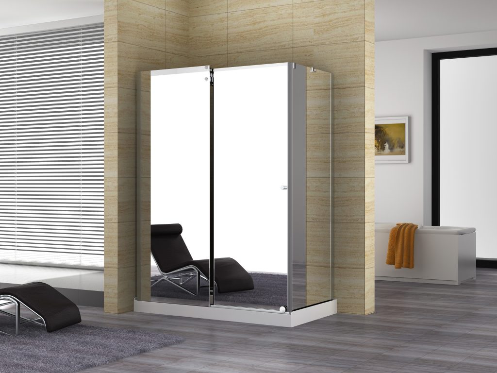 Imaginez une douche qui passe incognito dans votre salle de bain. Une douche devant laquelle vous vous préparez le matin en vous trémoussant au son de la musique des haut-parleurs intégrés. Une douche en miroir qui cache votre collection de bouteilles de savons et de shampoing, de luffa (ou de jouets d’enfants comme c’est le cas chez nous!). Avec une douche comme ça, c’est tout le concept du miroir traditionnel au-dessus des lavabos qui peut être repensé et le plan d’aménagement de votre salle de bain pourrait être fort différent de tout ce que l’on voit habituellement. Une idée très intéressante à développer!