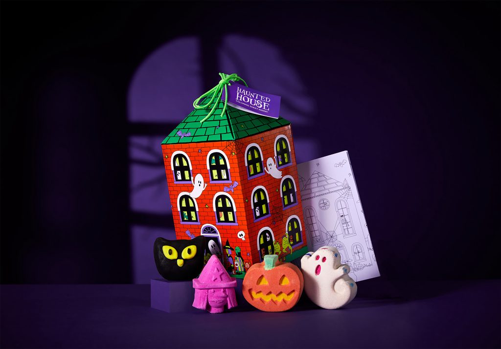 • Transformer son bain en maison hantée avec le coffret thématique de Lush. Il contient trois bombes pour le bain, un pain moussant et une feuille à colorier. Oserez-vous ajouter un fantôme ou une sorcière à votre bain? Gardez la boîte, ça fait une belle déco!