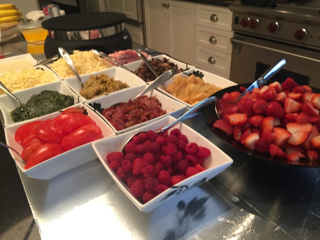 Au menu pour le brunch? Des crêpes que l’on fait cuire sur la plaque. On prépare la pâte à crêpes et les garnitures à l’avance (jambon, fromage, tomates, épinards et crème, poireaux caramélisés, fraises, framboises, sauces au caramel et au chocolat) puis les enfants font eux-mêmes l’assemblage. Génial pour les enfants difficiles ou allergiques! Et pour les desserts, inutile de dire que je choisis des pâtisseries sans aucun allergène comme les madeleines de Petit Lapin, ici décorées avec un style indien et ceux de la pâtisserie Bonbon collections.