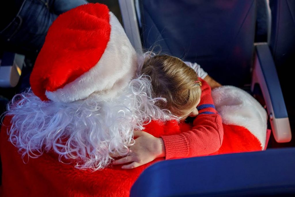 Pendant qu’on attend notre vol pour le Pôle Nord, je fais la connaissance de Maélie, 5 ans qui prendra l’avion pour la première fois! Elle a connu la maladie alors qu’elle n’avait que 3 ans et au moment où sa maman a appris le lourd diagnostic, elle a fait la promesse à sa fille qu’après la maladie, elle réaliserait son rêve: aller à Walt Disney! Chose promise, chose due, c’est en février, avec Rêves d’enfants, que la petite s’envolera, en compagnie de sa sœur Alicia et le reste de sa famille faire la connaissance des princesses. Et toi, Maélie, comment tu penses que le père Noël va arriver dans l’avion?