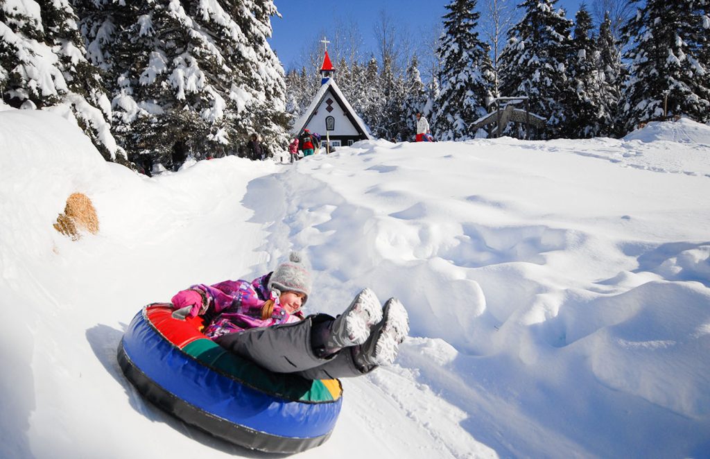 Nous sommes donc allés à la rencontre du père Noël dans son village au Pôle Nord (à Val-David). Glissades, escalade, patinoire, jeux gonflables, petit train, palais des glaces, animaux… le père Noël a de quoi amuser les tout-petits dans son village. Gros coup de cœur pour les glissades sur sac de jute et pour la tyrolienne, que ma grande de 5 ans a faite à maintes reprises. Les enfants (et papa!) ont beaucoup apprécié aussi l’enclos des animaux dans lequel on peut entrer. Maman, elle, a bien aimé que toutes les activités soient à proximité les unes des autres. Le village n’est pas si grand et c’est parfait pour les petits qui doivent redoubler d’efforts pour avancer dans leur habit de neige. Il est possible de louer un traîneau aussi pour quelques dollars.