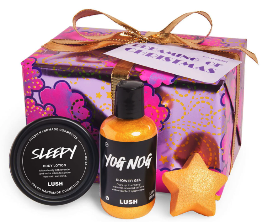 Lush propose d’abord Merry Christmas, une boîte de chapeau réutilisable, remplie de bombes pour le bain aux arômes qui plairont aux jeunes. Puis, Dreaming of Christmas qui contient un trio: un gel douche hydratant au caramel, une bombe pour la douche aux notes acidulées, sucrées et herbacées et Sleepy, une lotion corporelle au parfum apaisant de lavande et de tonka. Un plus, super intéressant: ces deux boîtes arrivent déjà emballées!