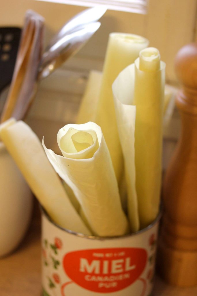 Je n’ai jamais été une grande fan du Saran Wrap, plus par incompétence que par souci écologique, mais là, c’est fini! J’ai fait une super découverte: la pellicule Api-flex, faite d’un tissu coton et de chanvre recouvert de cire d’abeille. On l’utilise pour emballer les sandwichs comme les fromages et aussi pour recouvrir les bols. Il suffit de la laver à l’eau froide et on peut la réutiliser plusieurs mois. On peut aussi se procurer des couvre-bols. Ceux-ci avec des chatons trouvés chez Simons sons trop mignons.