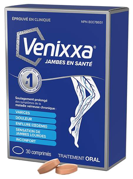 Oui!!! Le port de bas de compression (les fameux bas support!) en dessous du genou peut aider. C’est le temps d’essayer si vous êtes à la maison! Il peut falloir un petit peu de temps pour s’y habituer. Une autre bonne chose à faire, c’est de s’activer en allant faire une marche (en respectant évidemment la règle du 2 mètres) ou encore du vélo. La belle saison commence! Pour un bien-être durable on essaie toutefois de traiter le problème à la source. Les gens souffrant de maladie veineuse chronique légère à modérée peuvent être grandement soulagés avec un produit de santé naturel en vente libre comme Venixxa. Il s’agit d’un produit veino-actif, administré sous forme de pilules, qui agit en améliorant le tonus veineux, ce qui entraîne une meilleure circulation sanguine ainsi qu’une réduction de la douleur et de la sensation de jambes lourdes ou enflées. Ce produit, dont l’efficacité est prouvée par plusieurs études cliniques, est utilisé dans plus de 100 pays depuis 30 ans. Il est aussi offert en vente libre dans la plupart des pharmacies