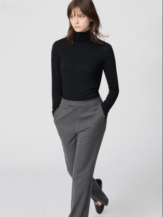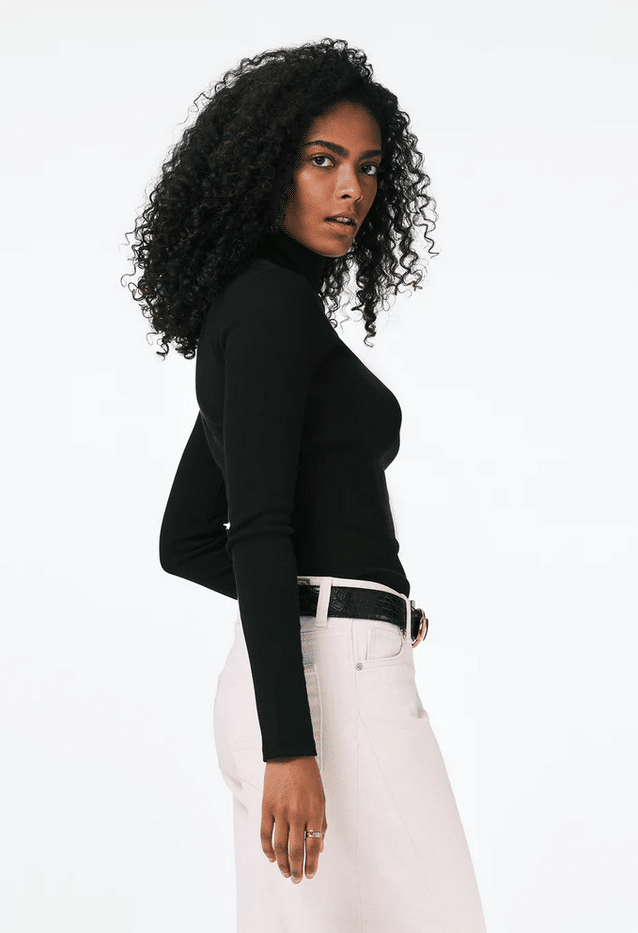 Le col roulé faisait partie intégrante du luxe discret de Carolyn, incarnant à lui seul son approche intellectuelle et dépouillée du style. Souvent choisi en maille fine noire, crème ou gris pâle, il épousait la silhouette, créant une ligne continue et élégante du cou jusqu’à la taille. À porter sous un manteau structuré ou avec un pantalon droit.