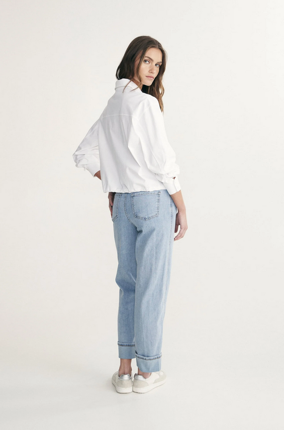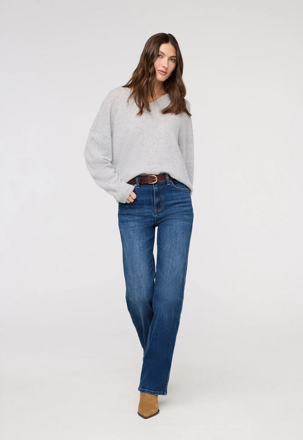 Coupé net, souvent dans un denim brut ou légèrement délavé, il allongea la silhouette tout en conservant une allure naturelle et sans effort. Associé à une chemise blanche, un col roulé ou un manteau structuré, il démontre que la simplicité a toujours meilleur goût.