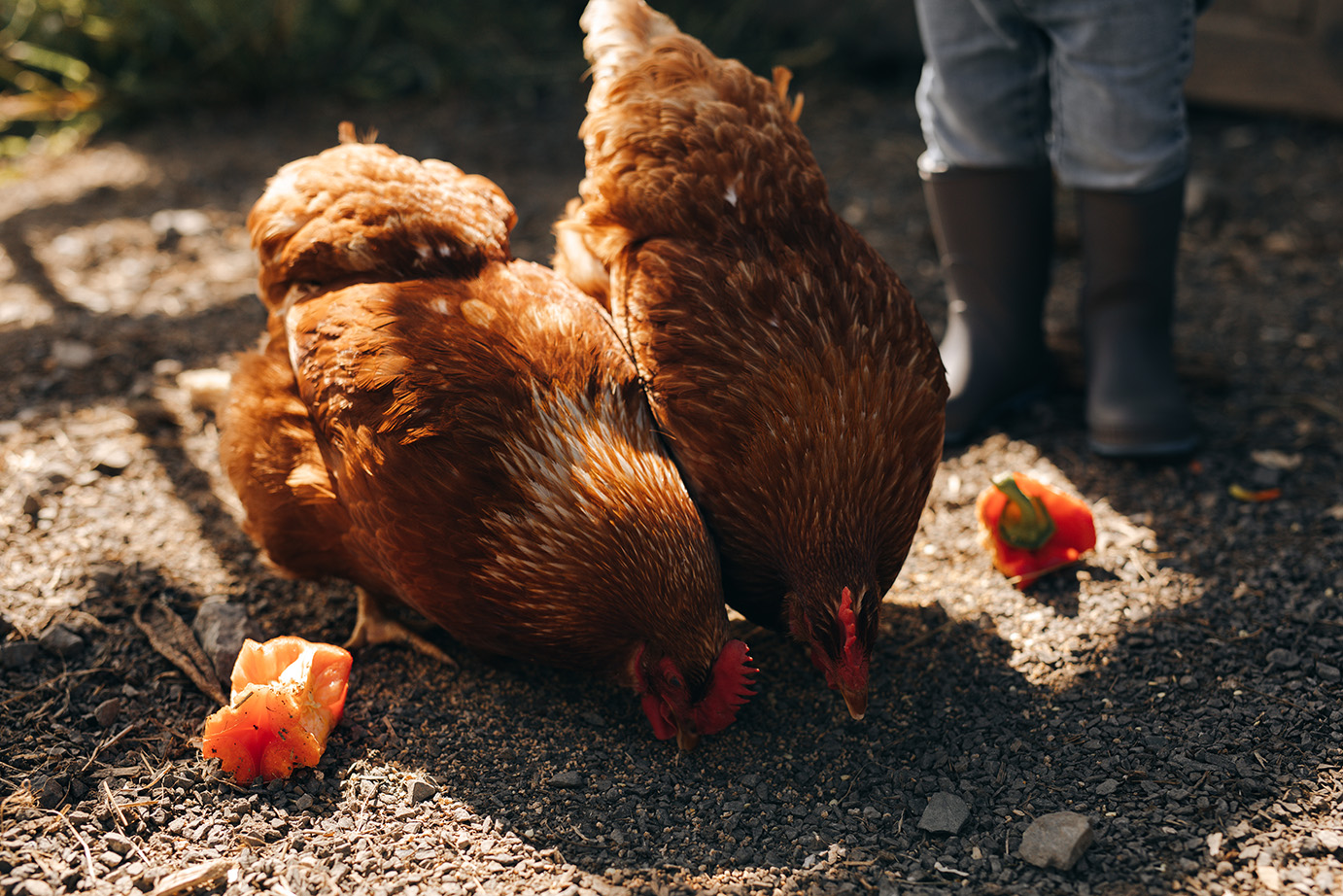 Notre photographe Sébastien Sauvage nous a reçu chez lui à L’Assomption pour illustrer la tendance du pantalon-jupe. Il nous a présenté ses poules rousses Barbara et Claudette.