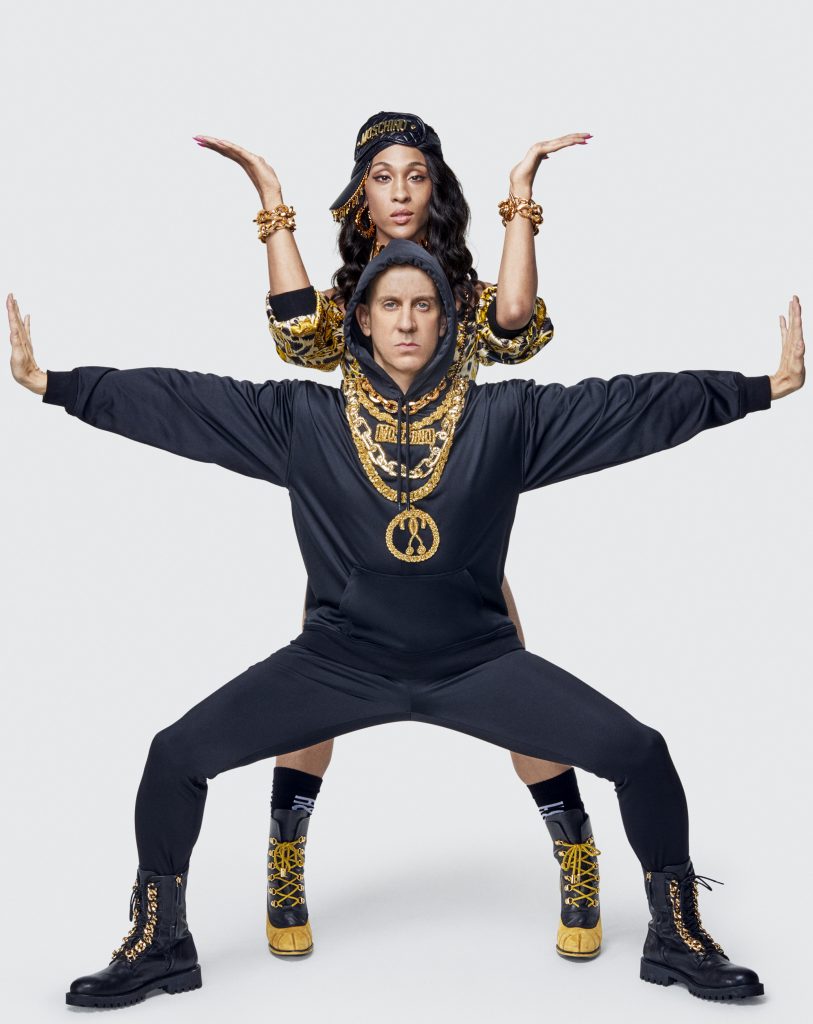 À propos de la collection elle-même, le créateur évoque «beaucoup de fantaisie, de couleurs et de personnages de dessins animés. Il fait d’ailleurs un beau clin d’oeil à Mickey Mouse qui célèbre son 90e anniversaire. Afficher la marque de ses vêtements comme on le faisait dans années 90 est d’ailleurs l’une des tendances phare de la saison. Bijoux XXL, couleurs vives, fausse fourrure, dorure, paillettes, bling et motifs éclatés, il y en a vraiment pour tous les fashionistas de ce monde. Fait amusant : la collection Moschino x H&M comprend aussi quelques articles pour chien afin que votre meilleur ami soit aussi stylé que vous!
