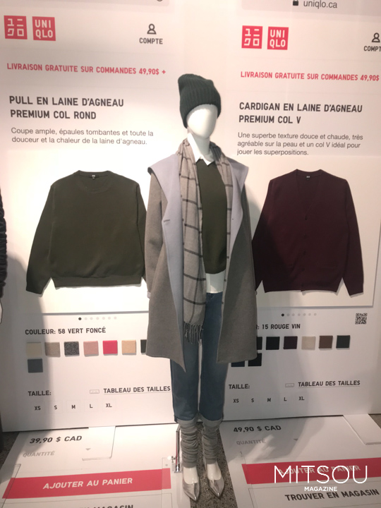 Pour la première fois au Québec, UNIQLO présentera sa boutique éphémère LifeWear les 8 et 9 novembre prochains, rue St-Alexandre à Montréal. UNIQLO est une marque japonaise qui offre des vêtements hyper confortables, indémodables, faits à partir de matières de qualité, et ce, avec un excellent rapport qualité-prix. Plusieurs de leurs morceaux sont conçus avec des aspects technologiques développés (fibres spéciales pour garder plus au chaud pendant l’hiver ou pour sécher rapidement par exemple). Ils décrivent d’ailleurs cette collection comme une technologie qui améliore le quotidien. La marque n’a pas encore pignon sur rue au Québec, mais exploite quelque 2000 boutiques un peu partout sur la planète. En attendant, on peut se procurer leurs collections sur leur boutique en ligne canadienne. La marque appartient à la grande entreprise japonaise Fast Retailing CO. qui possède aussi les marques J Brand, Princess Tam Tam et Theory, pour n’en nommer que quelques-unes.
