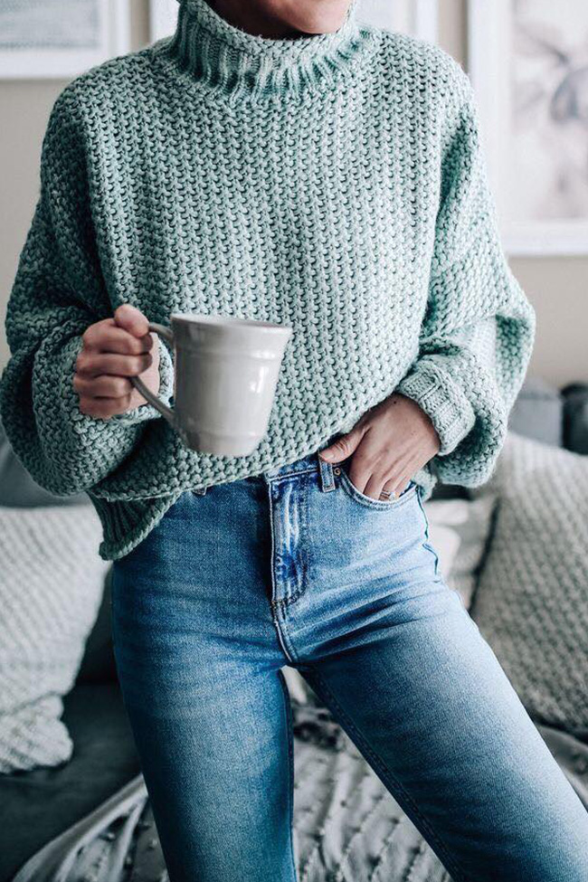 Pour un effet plus décontracté, choisissez un modèle ample à agencer avec votre jeans préféré. Si vous êtes une adepte des jeans à taille haute (mom jeans), ça fonctionne aussi très bien et ce sera ultra tendance. Osez les grosses mailles et les modèles de couleurs pastel ou vives pour donner du punch à votre style cocooning. Complétez ce look avec des baskets et un manteau long. Vous serez bien au chaud, confo, mais toujours tendance.