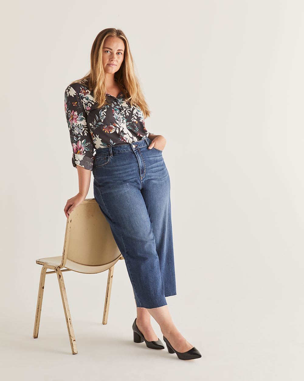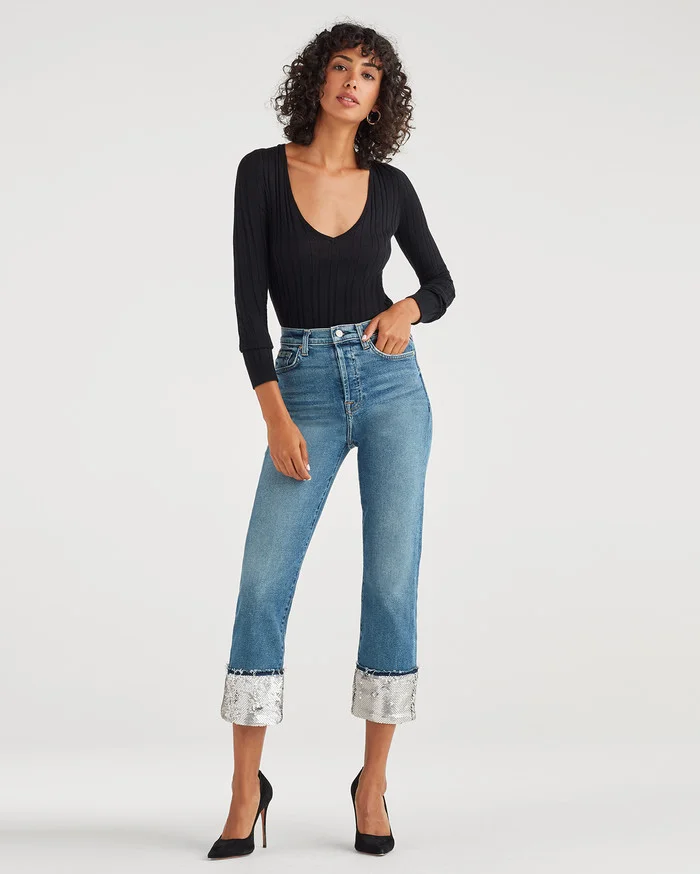 Le jeans droit est sans aucun doute celui qui s’adapte le plus facilement à tous les styles et toutes les morphologies. Il allonge la jambe et équilibre parfaitement la silhouette, sans être trop moulant. Il est un bon compromis pour celles qui hésitent à porter des modèles très ajustés.