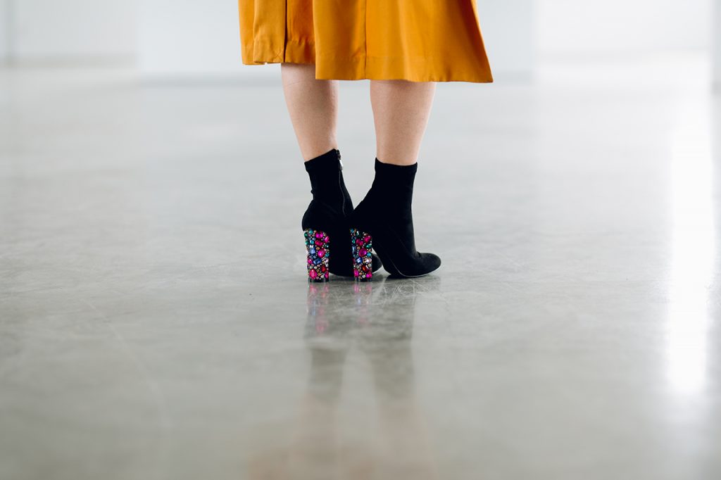 Côté chaussures, ce sont les bottillons, les bottes de type cuissarde, les mocassins ou encore les escarpins qui ont la cote. Attention aux cuissardes qui peuvent tomber rapidement dans le cliché si elles ne sont pas bien agencées. Pensez aussi à adopter la tendance avec un sac à dos, fourre-tout, à bandoulière ou pochette de soirée.
