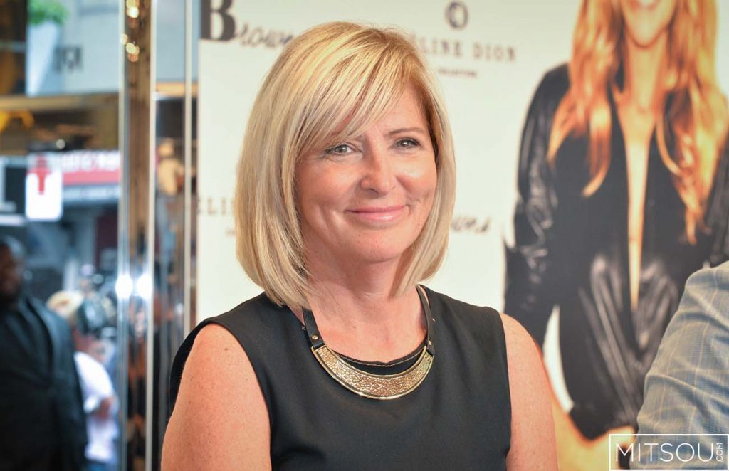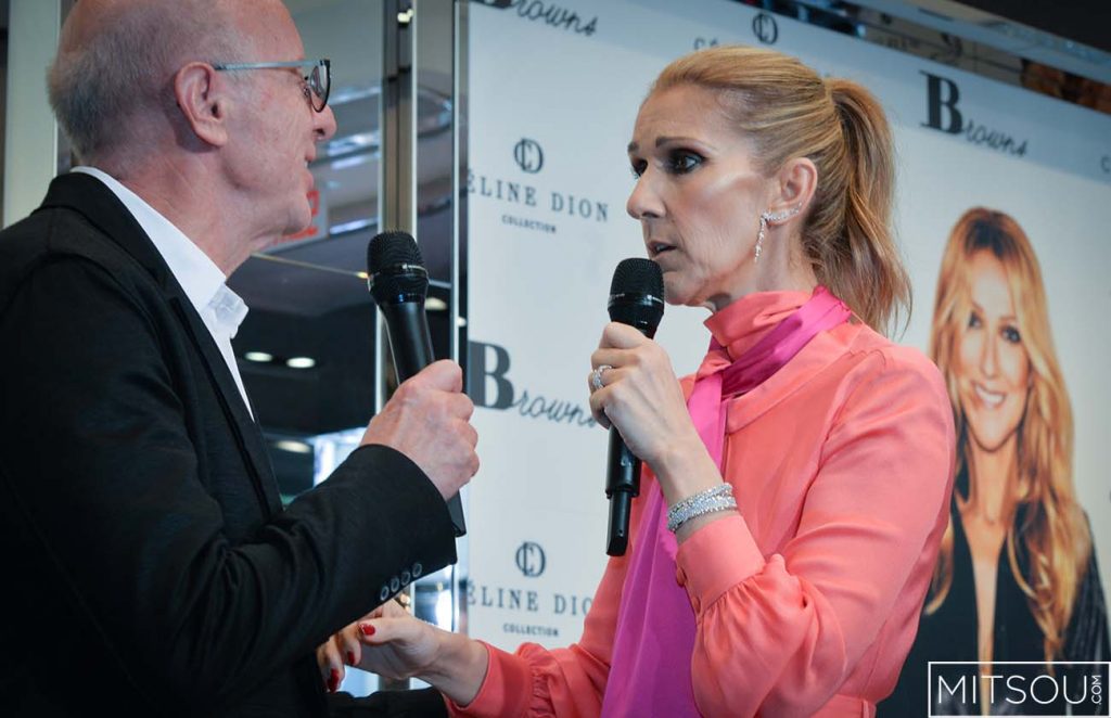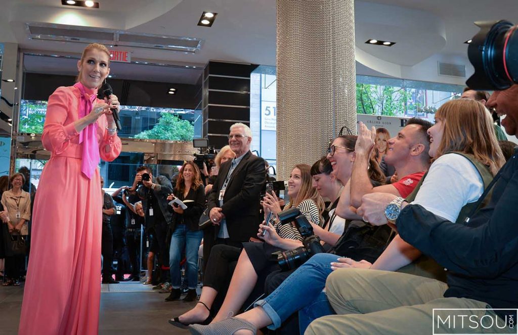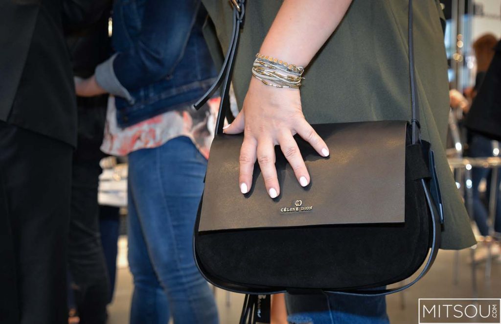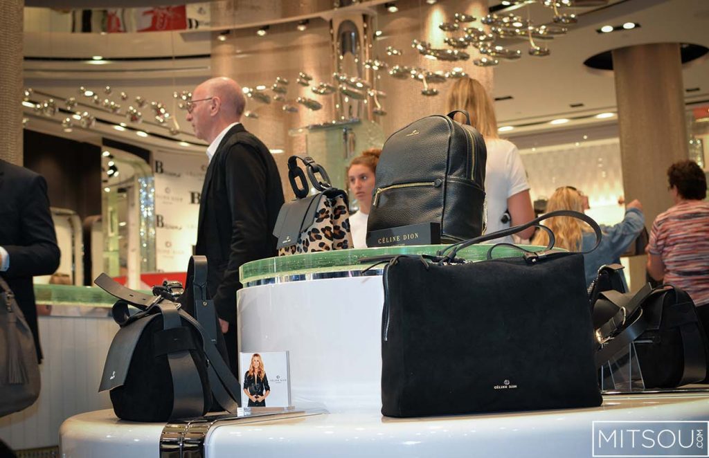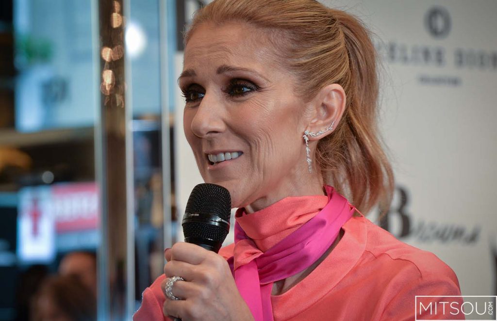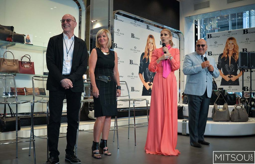 Céline Dion, épanouie comme jamais, est venue présenter aujourd’hui sa collection de sacs Bugatti au magasin Browns de la rue Sainte-Catherine.