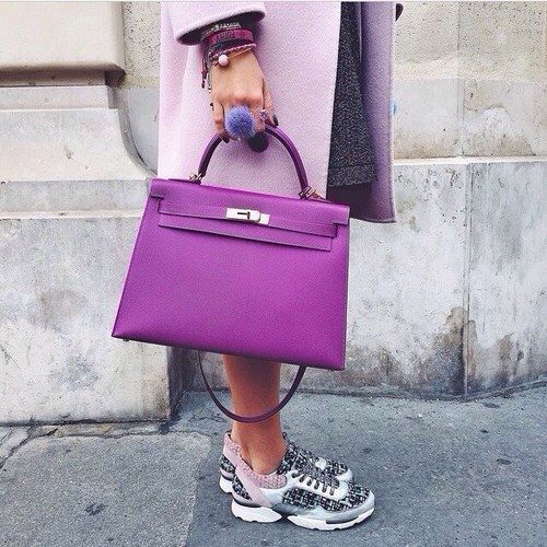 Premièrement, vous devez savoir qu’ultra violet est une couleur intense, donc nous vous conseillons d’y aller doucement, avec un seul vêtement ou encore un mariage de deux accessoires (souliers, sac ou bijoux) question de ne pas avoir l’air sortie tout droit des années 80. Comment intégrer le mauve à notre garde-robe? Voici 5 façons d’agencer facilement le mauve sans faire de faux pas.