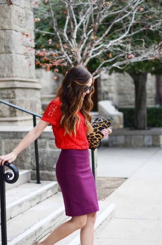 La couleur ultra-violet, c’est une combinaison de rouge et de bleu, le chaud et le froid qui se rencontrent. C’est pour cette raison que le violet est une couleur pure, froide et très pigmentée. Marier le mauve et le rouge ajoutera beaucoup de chaleur et de punch à vos tenues. Cette tendance peut paraître intense, mais vous pouvez commencer par simplement ajouter un accessoire rouge (sac à main, boucles d’oreilles, écharpe, boucle à cheveux, chaussures) à votre chemisier ultra-violet ou à votre robe à petites fleurs violettes. Vous ne passerez certainement pas inaperçue! Tout repose sur l’équilibre. Le vernis à ongles et le rouge à lèvres rouge font aussi partie des trucs mode à savoir bien agencer cette teinte.