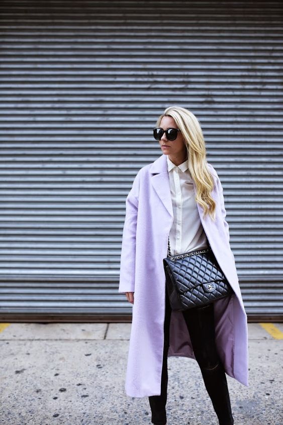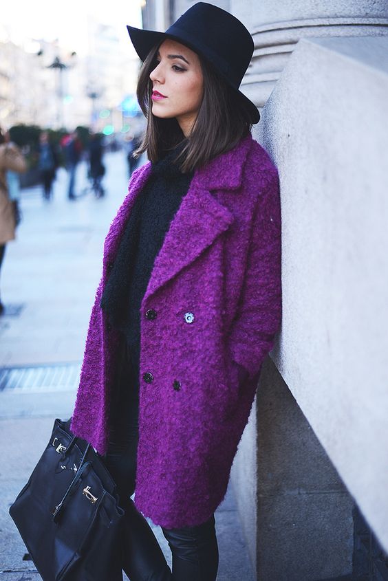 Ce fameux noir qui s’agence avec tout! Il est facile de porter votre article violet coup de coeur avec n’importe quel morceau noir. Oubliez le look total violet et misez davantage sur une pièce que vous allez mettre en lumière. Pas besoin de vous casser la tête, toutes les teintes de mauve se marient bien au noir. C’est la clé pour oser une couleur dont vous êtes incertaines…