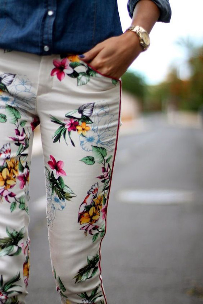 - 5e conseil : Ayez toujours en tête que comme tout imprimé, le motif floral s’adopte selon votre type de silhouette. Si vous avez les épaules plutôt larges, privilégiez l’imprimé dans le bas du corps, sur un pantalon par exemple, pour rééquilibrer votre silhouette. Si vous avez des hanches fortes hanches, portez les fleurs plutôt une robe de ligne A ou un chemisier.