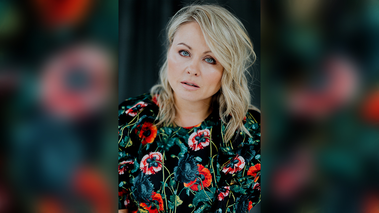 Mitsou porte un chemisier à fleurs H&M et des boucles d’oreilles orangées qui rehaussent pafaitement sa tenue.