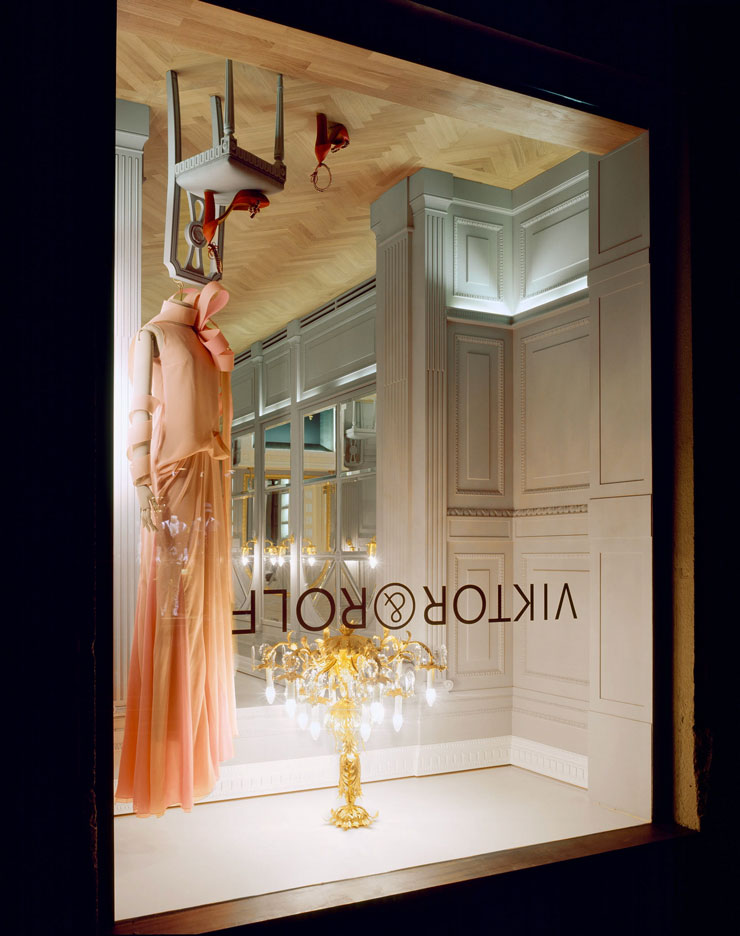 - Jusqu’en 2008, à Milan en Italie, on pouvait visiter la plus saisissante des installations inspirée par leur collection Upside down. Toute leur boutique de type boudoir était à l’envers. On pouvait admirer le carrelage du plancher de bois en levant les yeux et comme dans nos rêves, on pouvait enfin marcher sur le véritable plafond!