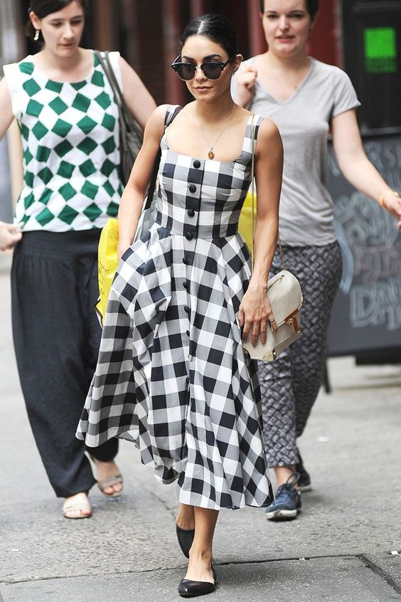 Popularisé dans les années 30 par l’actrice Judy Garland et son personnage de Dorothée dans Le magicien d’Oz qui portait la célèbre robe à carreaux bleu pâle et blanc, le motif vichy a pris son envol. À la fin des années 50, il est récupéré par Brigitte Bardot qui choisit une robe à motif vichy rose et blanc pour son mariage avec l’acteur Jacques Charrier. Le vichy est se distingue par des carreaux d’une couleur dominante sur un fond blanc (le noir, le marine et le rouge sont les plus populaires). Il est l’une des tendances rétro qui a su réintégrer les podiums, les boutiques de vêtements et les garde-robes en force. Plusieurs de vos vedettes préférées l’adorent.