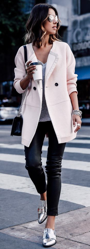 - Vous devez savoir que les matières brillantes captent la lumière, ce qui a pour effet de créer un effet de volume. Nous vous conseillons de privilégier des pièces qui équilibreront votre silhouette. De plus, il est préférable de les agencer avec des vêtements de couleur neutre question de ne pas avoir l’air d’un morceau de papier d’aluminium! Portez par exemple un perfecto argent avec un chandail noir et un skinny noir pour un look glam rock tout en subtilité.