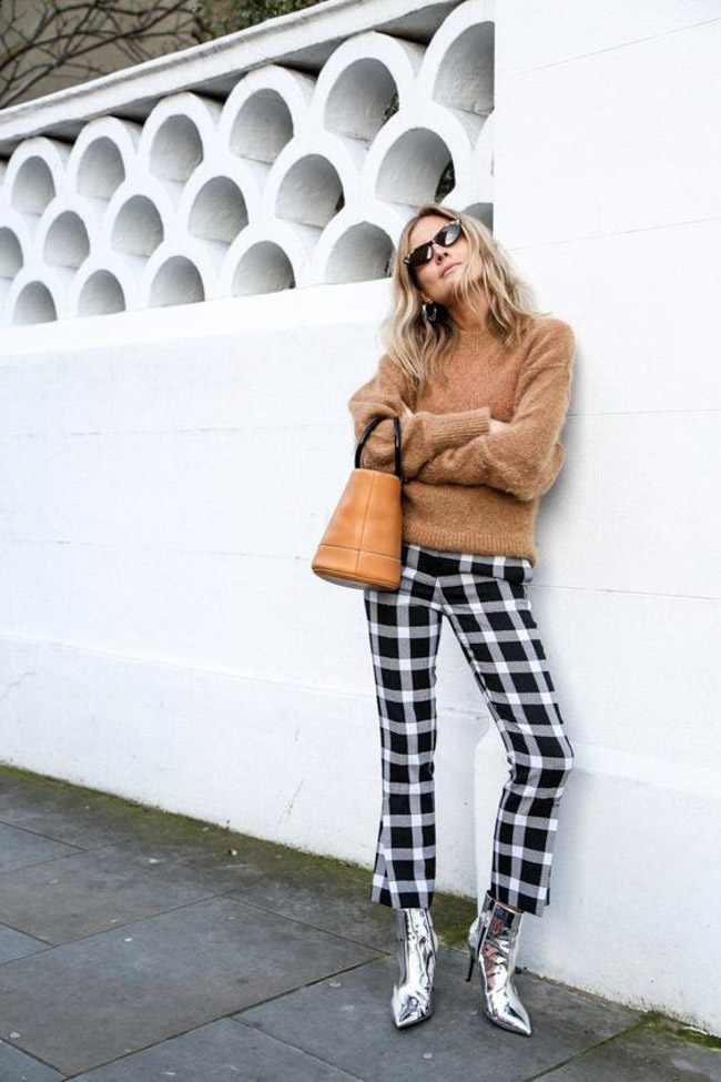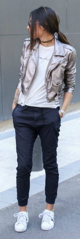 Quelques idées? Le pantalon métallique s’agence à merveille avec un simple chemisier blanc ou un t-shirt noir pour un style chic décontracté. Le week-end, portez votre gros tricot douillet avec un jeans et une paire d’espadrilles pour un look des plus confortables. Une robe en lamé pour une soirée entre filles, c’est oui!