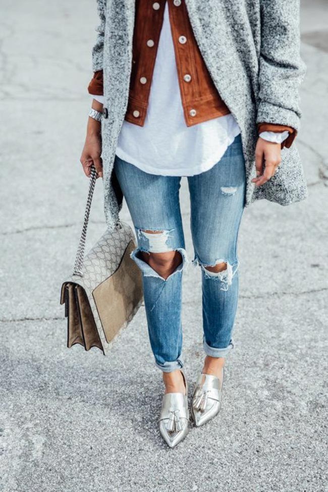 - Pensez chaussures et sacs à main! Des essentiels tellement polyvalents et accessibles. Vous pouvez vraiment agencer vos souliers, bottes ou espadrilles argentés avec n’importe quelle pièce de votre garde-robe. Quels que soient vos goûts en matière de souliers, vous trouverez assurément la paire de vos rêves. Si vous optez pour le sac métallique, version pochette ou gros sac, misez sur une tenue sobre et peu colorée.