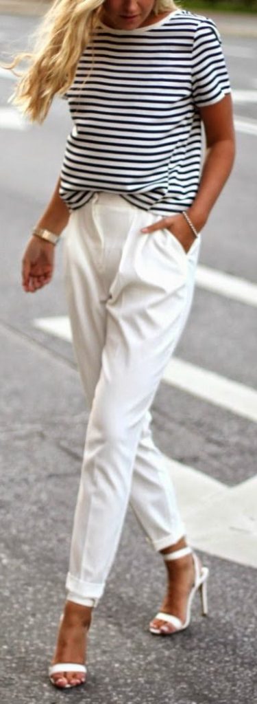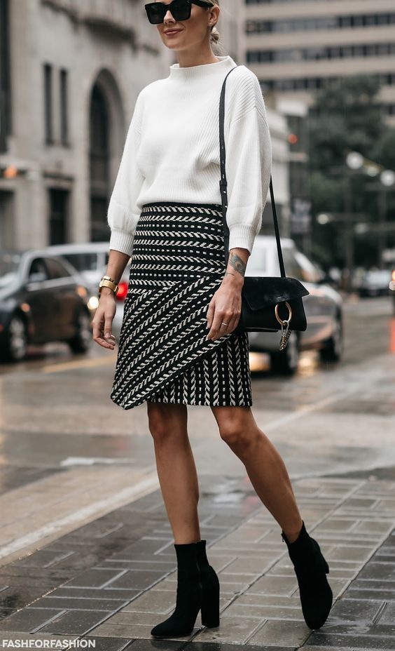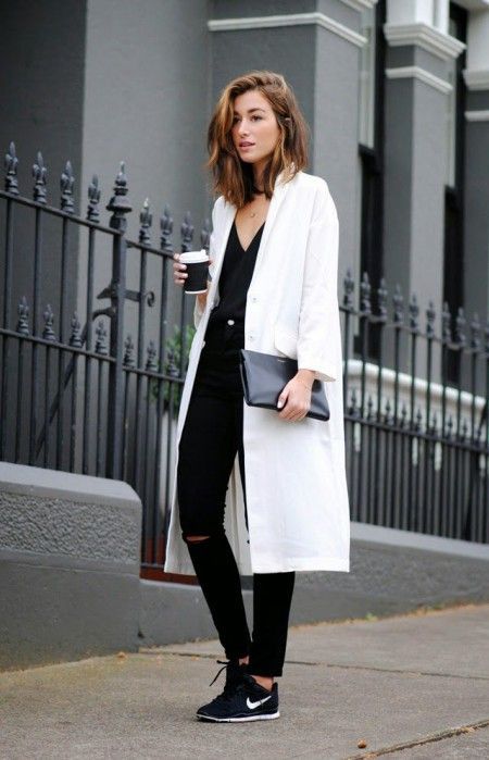 Si vous ne voulez pas adopter la tendance noir et blanc parce que vous trouvez cela trop intense pour votre style, mariez ces couleurs avec un article en jeans. Un jeans, ça se porte avec tout! Que ce soit un chemisier floral, un chandail rayé ou un veston à carreaux, votre look sera sans faille. Choisissez des chaussures à talon haut et bout pointu pour un look plus chic. Pour les amoureuses d’espadrilles, un modèle noir et blanc peut jazzer facilement votre tenue jeans et t-shirt du weekend.
