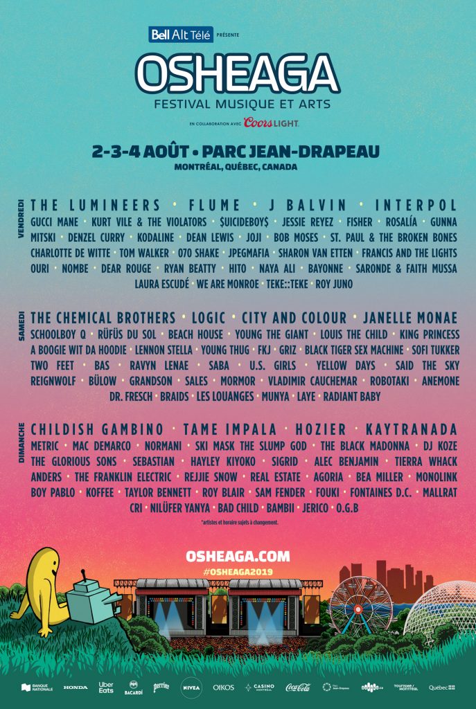 Le plus gros festival et aussi le plus couru à Montréal depuis plus d’une décennie, c’est Osheaga qui sera présenté du 2 au 4 août au parc Jean-Drapeau. Nous serons sur place pour repérer les plus beaux looks et écouter quelques-uns de nos groupes et artistes favoris.