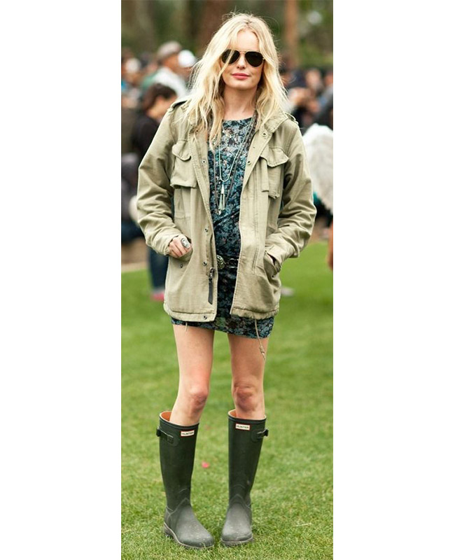 Premier conseil: le confort avant tout… N’oubliez surtout que vous serez debout de très longues journées. Le PLUS important, c’est donc votre choix de souliers. Laissez les talons hauts à la maison. Ils ne sont pas pratiques de toute façon dans la boue ou le gazon. Optez plutôt pour vos bottillons à talons blocs (déjà cassés), vos espadrilles les plus cool, vos bottes de pluie ou des sandales offrant un bon support (oubliez les gougounes de plage). Vos pieds sauront vous remercier!