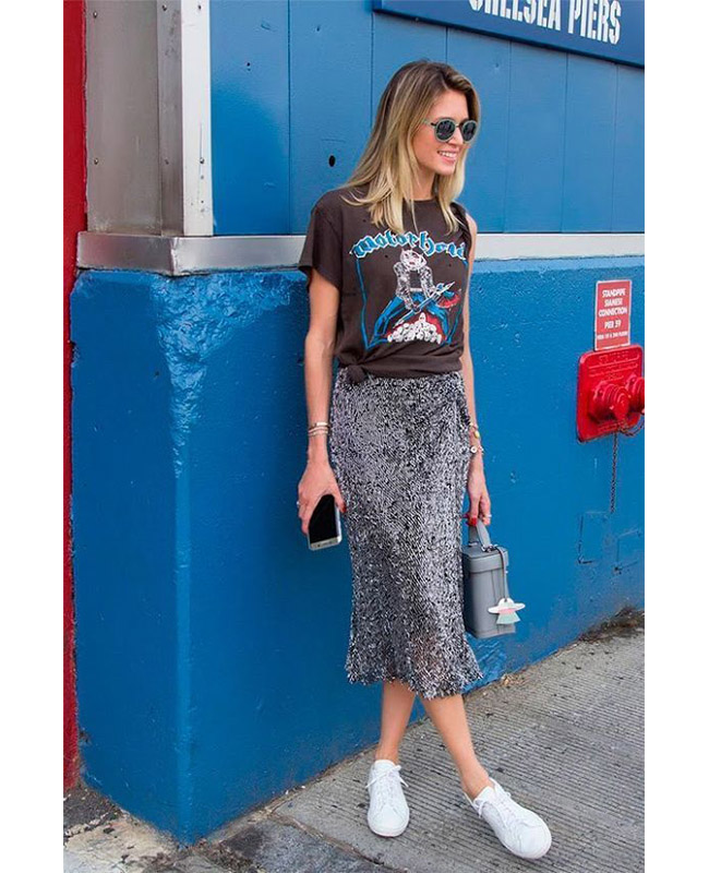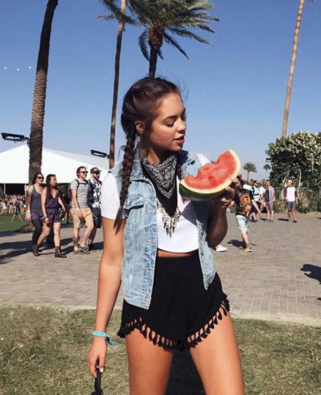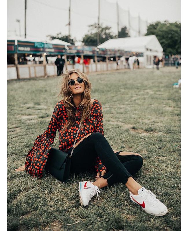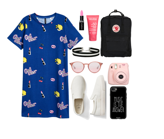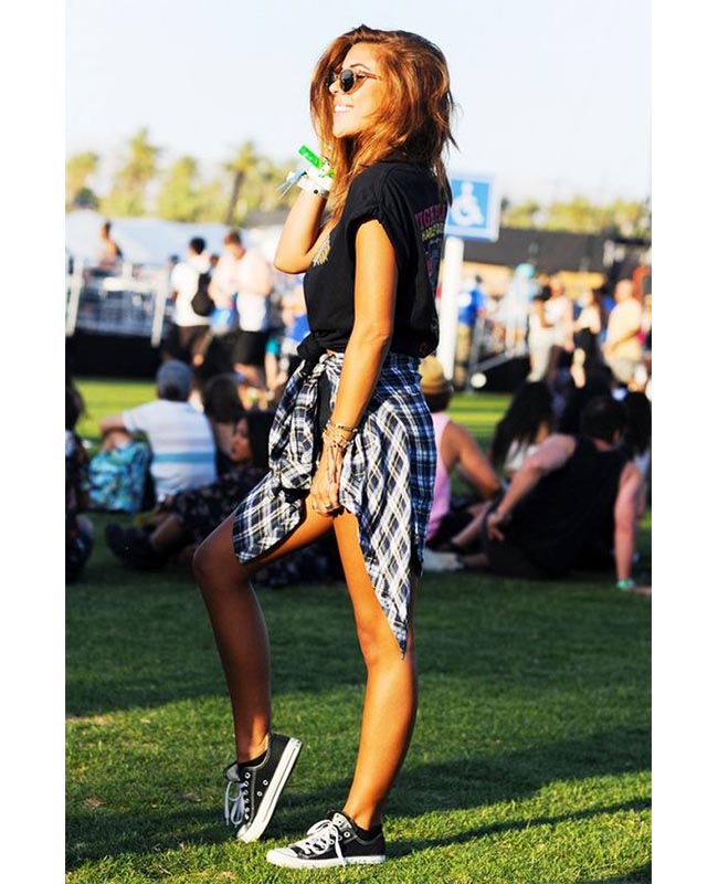 Voici quelques incontournables pour un look réussi : t-shirts de band ou avec un message, la paire de shorts en jeans, les combinaisons fluides, les robes tuniques ultra confos (t-shirt XXL), les robes d’inspiration gitane, les jupes courtes et colorées, les hauts courts, les pantalons à motifs (style pyjama) et n’importe quel modèle de jeans que vous affectionnez. Vous pouvez laisser aller votre imagination et recycler des vêtements de votre penderie. Coupez une paire de vos jeans pour faire un short ou portez le t-shirt de votre copain comme une robe. Tout est possible!