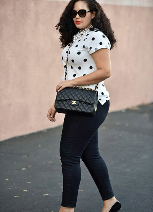- Choisissez la bonne grosseur de pois selon votre silhouette. Sachez que les petits motifs ont tendance à amincir et les plus gros à donner de l’ampleur.